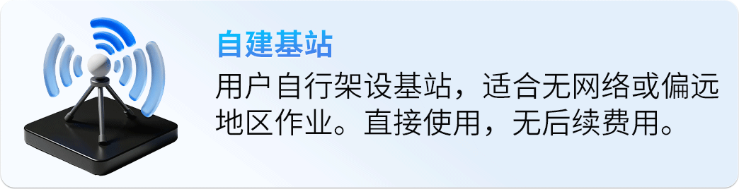 支持自建基站或接入CORS网络,多种通信模块自由组合,确保差分数据链路的稳定与灵活。
