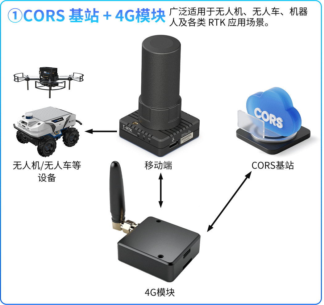 支持4G模组直连CORS、电台自组网、Python API 接入CORS多种通信方式,灵活适配不同应用场景。